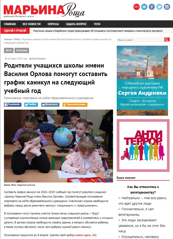 Родители учащихся школы помогут составить график каникул на следующий учебный год