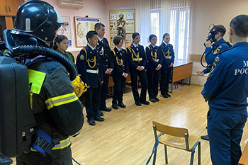Кадеты смогли почувствовать себя настоящими пожарными: ребята примерили рабочую одежду, посидели в пожарной машине и выполнили упражнения на всех тренажёрах.