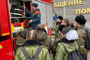 Ребятам продемонстрировали боевую экипировку пожарного, пожарную машину, её устройство и оснащение, а также учебные тренажёры для подготовки специалистов.