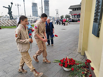 В Международный день солидарности в борьбе с терроризмом кадеты и юнармейцы школы Марьина Роща приняли участие в возложении цветов к мемориальной доске на станции метро Рижская.